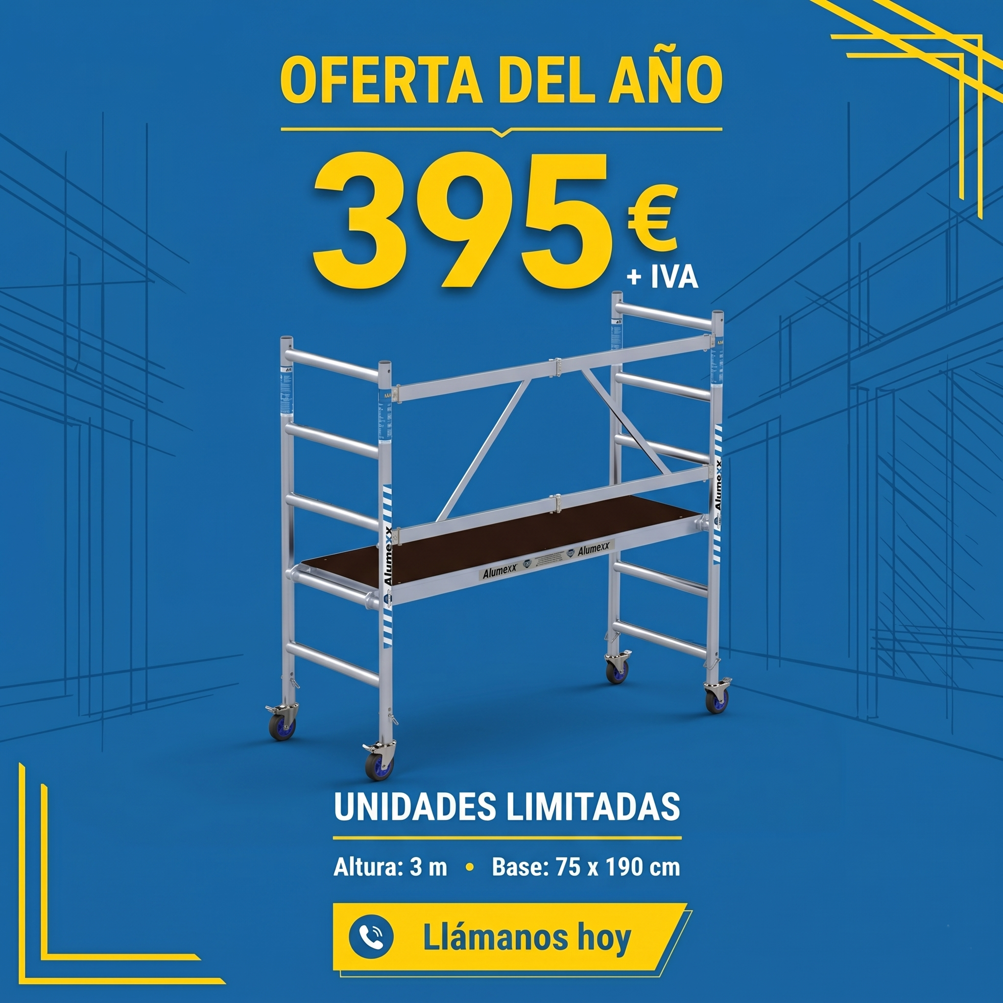 Fabricamos a medida andamios de aluminio y estructuras personalizdas de seguridad, que cumplen con todas las normativas de seguridad europeas.